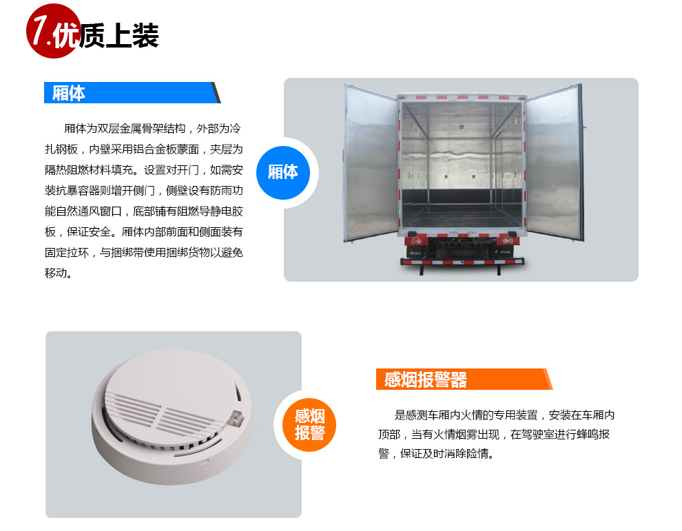 2.東風(fēng)4.1米4噸氣瓶廂式運輸車上裝配置:廂體尺寸:4100×1900×1750(mm),中間開單側(cè)門,雙側(cè)門,(選裝不開側(cè)門貨廂),面板采用可產(chǎn)生靜電屏蔽效應(yīng)的冷扎鋼板,中間附以阻燃材料,內(nèi)飾鋁合金。廂內(nèi)安裝固定運載物的臥環(huán),防燃煙霧報警器,門上安裝防盜報警器,前置防撞防靜電膠皮。底部為防爆鋼板上鋪靜電膠板。其它按東風(fēng)4.1米4噸氣瓶廂式運輸車標配生產(chǎn)。